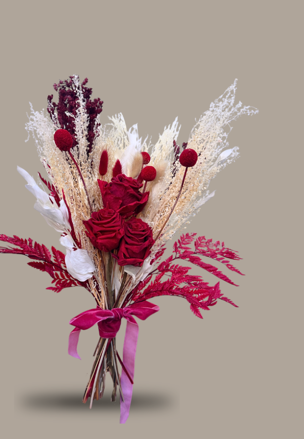 Descubre la magia de Magia Escarlata, un arreglo de flores preservadas que captura la esencia navideña con sus tonos rojos vibrantes y beige suave. Estas flores duran meses sin perder su belleza, regalándote elegancia permanente en tu hogar. Irradia calidez y sofisticación en cualquier rincón, perfecto para celebrar la temporada con estilo. Un regalo que sigue brillando mucho después de las festividades. ¡Belleza que perdura como la magia navideña!